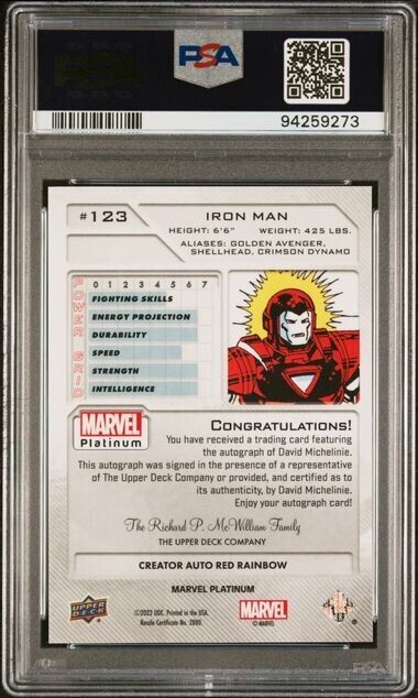 Iron Man #123 Creator Auto Red Rainbow PSA 8 Upper Deck 2023 Marvel Platinum