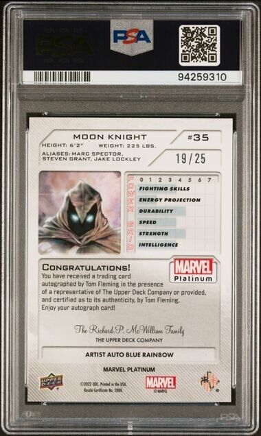 Moon Knight #35 Artist Auto Blue Rainbow /25 PSA 9 Upper Deck 2023 Marvel Platinum
